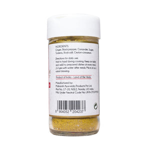 This Kapha-balancing churna is ideal for adding to foods that increase Kapha dosha. It helps to stimulate digestion and metabolism, making it perfect for heavy, rich foods.