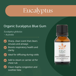 Our Holy Sanity Organic Eucalyptus Essential is perfect for your diffuser or oil burner.